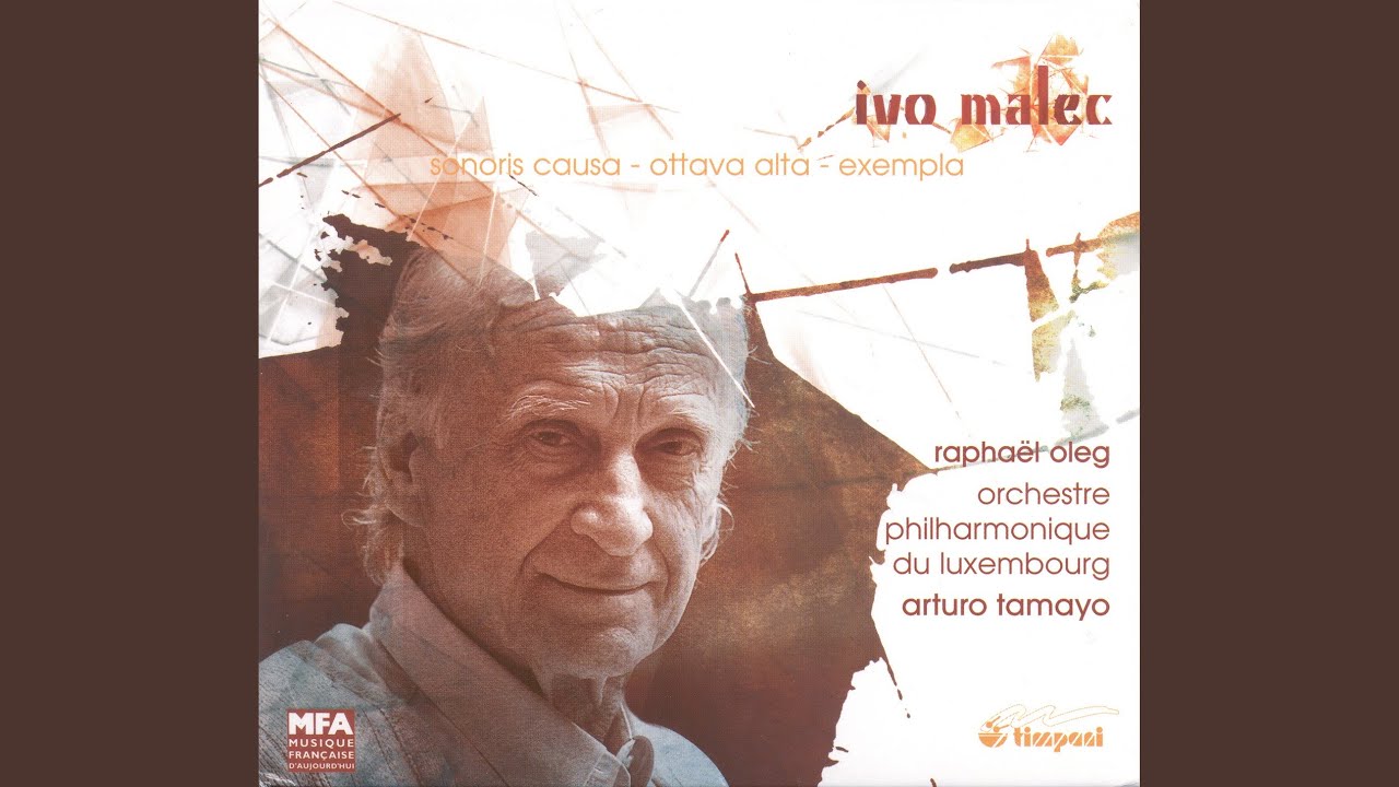 Xenakis' orchestral works, particularly in the forward deployment of percussion and powerful, block-like sonorities in the winds; yet Malec's orchestration is more transparent and simplified, as is the case in Sonoris causa (1997) and the retrospective collage Exempla (1994). Perhaps his most viscerally exciting work is the high-strung violin concerto Ottava alto (1995), which